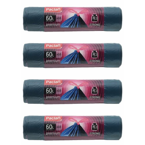 Paclan Мешки для мусора Premium с лентой, синие, 60 л, 10 шт, 4 рулона