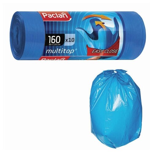 Мешки для мусора 160 л с ушками синие рулон 10 ПВД 30 мкм 90х125 см PACLAN "Multitop", 4 шт