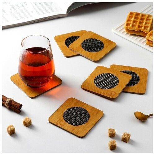Набор подставок под горячее, 6 шт, 9,5×9,5 см, квадраные