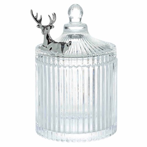 (W)Емкость для хранения, 17х11 см, стекло Р/металл, Серебристый олень, Ribby