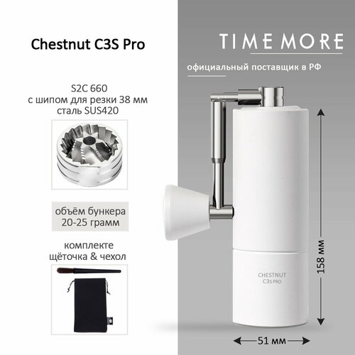 Кофемолка ручная Timemore Chestnut C3S Pro, белая
