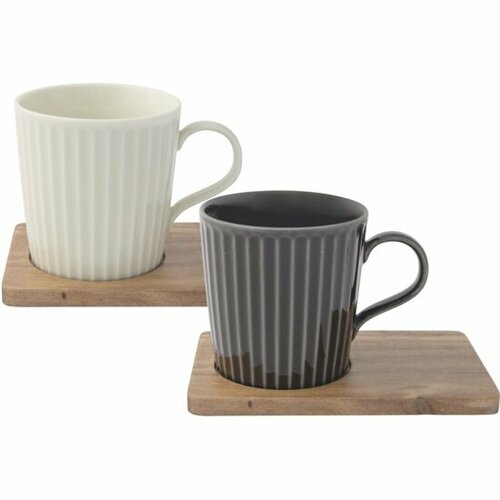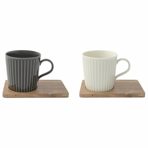 Набор кружек на подставке Easy Life Время отдыха 380 мл, 2 шт, фарфор твердый, дерево, черная, светл