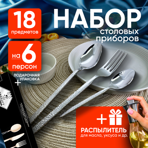 Набор столовых приборов на 6 персон, 18 предметов, нержавеющая сталь