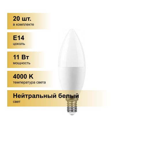 (20 шт.) Светодиодная лампочка Feron свеча C37 E14 11W(935lm) 4000K 4K матовая 114x37, LB-770 25942