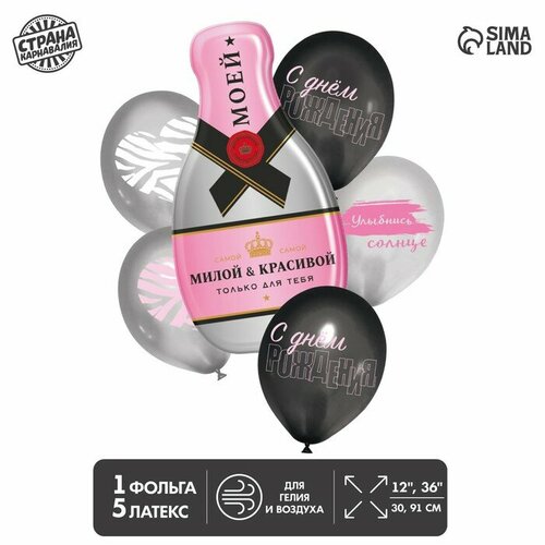 Букет из шаров «С Днём Рождения», шампанское, латекс, фольга, набор 6 шт.