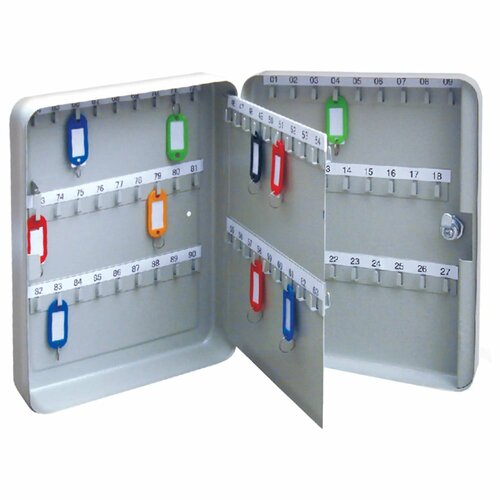 Шкафчик (Ключница) на 90 ключей BRAUBERG, 300х240х80 мм, с замком, +90 брелоков, серый