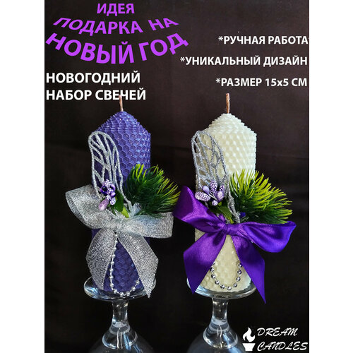 Цены на Недорогой подарок на Новый год. Подарочный набор свечей ручной работы. Подарок коллеге белый, фиолетовый, белый в г. Новосибирск