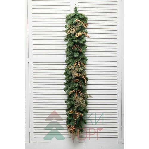 Хвойная ветвь Элитная с золотым декором 140 см, Литая+ПВХ, ЕлкиТорг (52060)