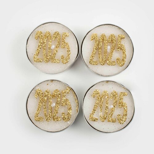 Свеча чайная, 4 см, 4 шт, бело-золотистая, 2025, New Year