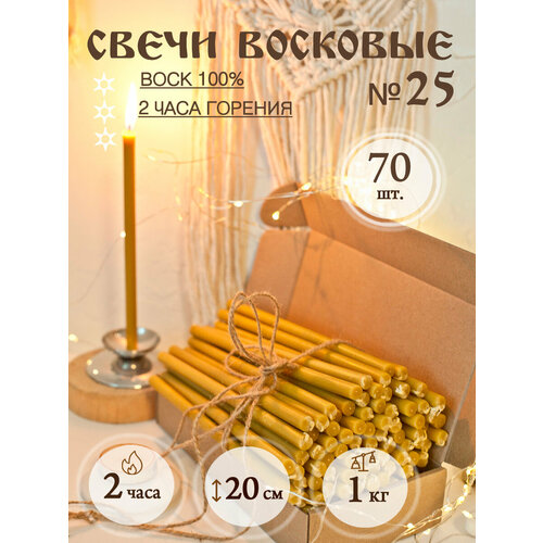 Церковные свечи Даниловские, освященные, восковые, №25, желтые, 70 штук