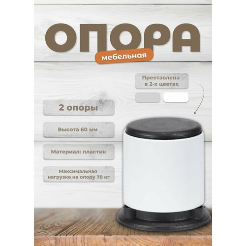 Ножки для мебели регулируемые D-50 мм Н-60 ДК12 белые, комплект 2 шт, опора мебельная для кухни, стола, шкафа, кровати