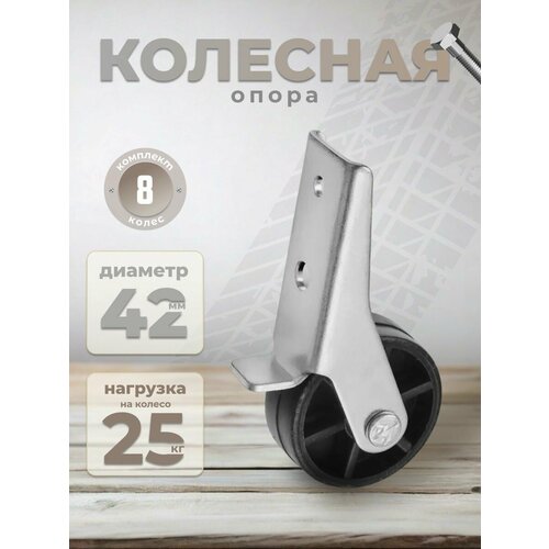 Колесо для оборудования, мебели, стеллажей поворотное, без тормоза, со штифтом М8, нагрузка до 30 кг, подходит для твердых и ровных поверхностей внутри помещений и на открытом воздухе.