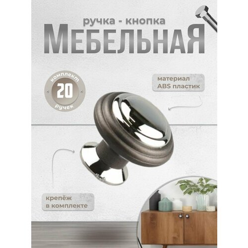 Ручка-кнопка мебельная BRANTE К4 графит/хром, комплект 20 шт, ручка для шкафов, ящиков, комодов, для кухонного гарнитура, фурнитура для мебели
