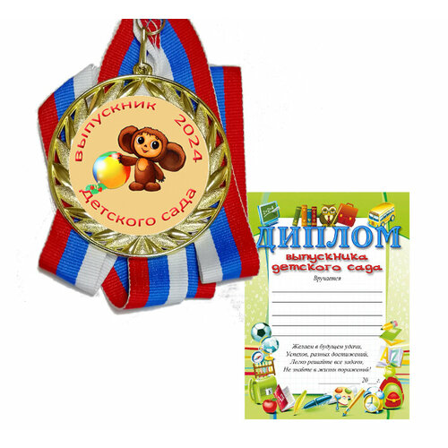 Медаль золотая "Выпускник детского сада 2024" чебурашка и диплом