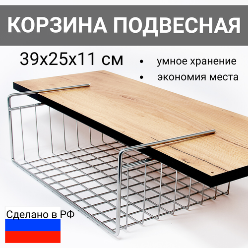 Корзина подвесная для полки. Металлическая. 39х25х11 см.