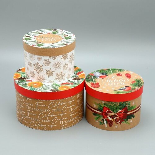 Дарите Счастье Набор коробок круглых 3 в 1 «Поздравляю с Новым Годом», 18 × 18 × 13 см - 25 × 25 ×15 см