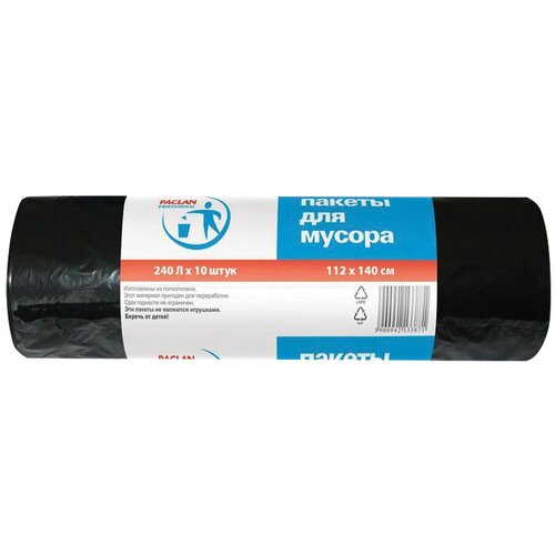 Мешки для мусора 240 л, черные, в рулоне 20 шт, ПВД, 35 мкм, 140х90 см, PACLAN "Big&Strong"