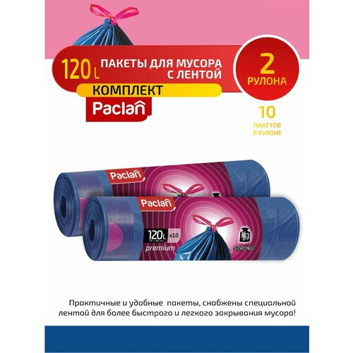 Комплект Paclan PREMIUM Мешки для мусора с тесьмой ПВД 120 л. 10 шт. в рулоне х 2 шт.