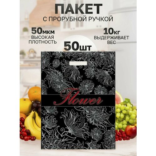 Пакет с петлевой ручкой Флёр 38х34+3 см, 70 мкм, 50 штук