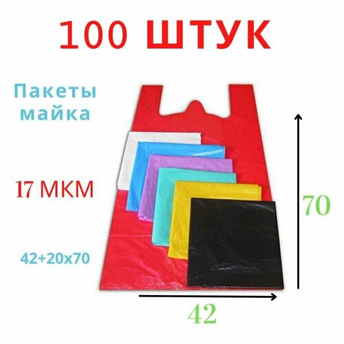 Пакет майка 42+20х70 см, цветная, 17 мкм 100 шт