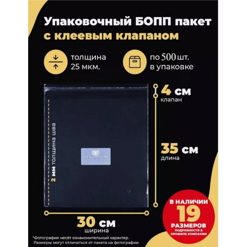 Упаковочные БОПП пакеты с клеевым клапаном 30х35 + 4см. по 500шт