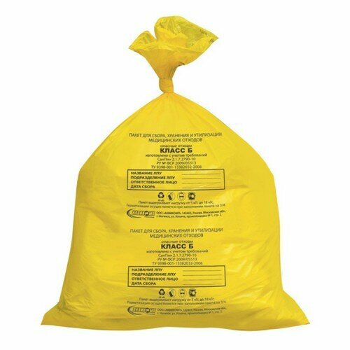 Пакеты для утилизации медицинских отходов, 33х30см - 6л класс Б (желтый) (5 упак по 100 шт) (500 шт/уп)