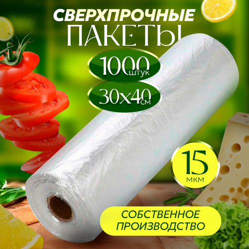 Пакеты фасовочные 30х40 1000 штук 15 мкм, для упаковки продуктов, заморозки