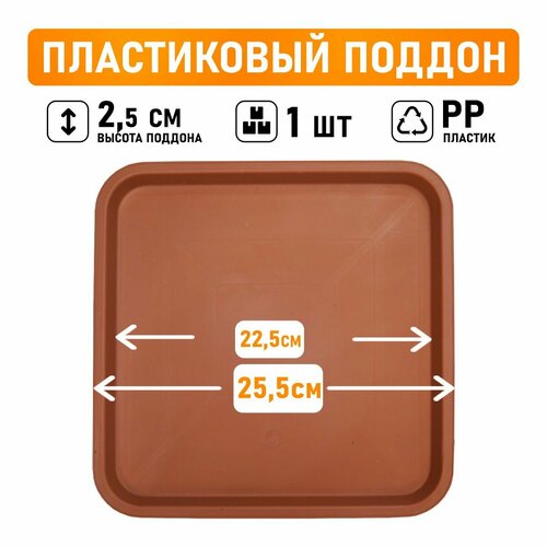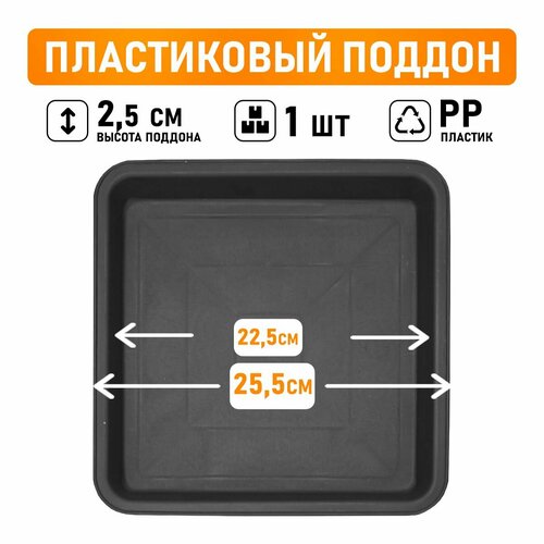 Поддон для горшков квадратный посадочный размер 22,5 см, внешний 25,5 см