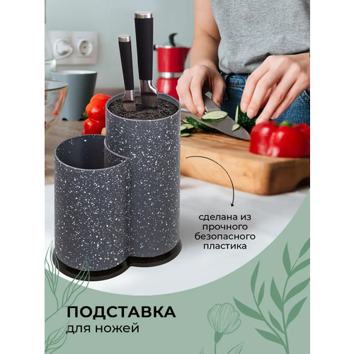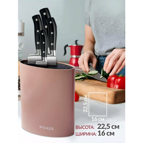 черныйПодставка для ножей (ножовница) овальной формы. Удобное, современное решение для вашей кухни. Универсальная, подходит для ножей любого размера и формы. Сделана из прочного безопасного пластика. Размер 22,5х16 см. Заполнена наполнителем (пучок тонких полипропиленовых полосок), который прочно держит ножи в вертикальном положении. Полипропилен экологичен и безопасен, легко моется. Ножовница утяжеленная и устойчивая. Не будет опрокидываться под весом кухонных ножей. Стильная и функциональная подставка для ножей пригодится на каждой кухне. Будет отличным подарком родственникам или друзьям. В подставку может войти много ножей.