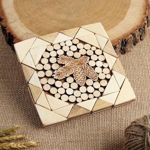 Подставка под горячее "Шишки", 15х15см, микс дерева