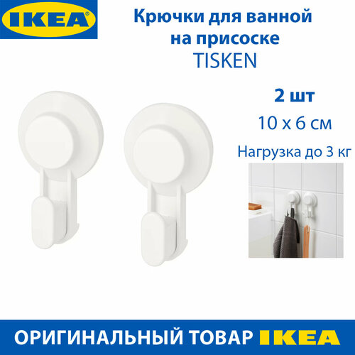 Крючки для ванной IKEA TISKEN (тискен), для полотенец, на присоске, белые, 2 шт