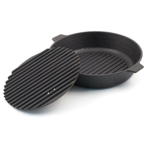 Сковорода-гриль литая чугунная 280х60 с двумя ушками и чугун. крышкой