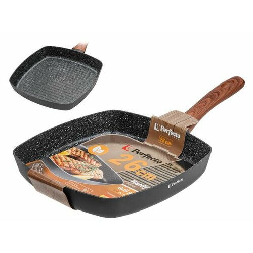 Сковорода-гриль, ф 26х4.3 см, алюм. антиприг. покр, для индукц. плит, серия Hardy Plus, PERFECTO LINEA (для всех типов варочных поверхностей) (55-260141