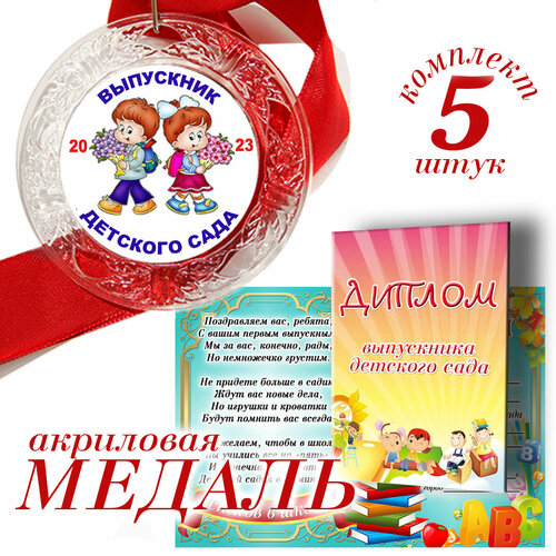 Медаль "Выпускник детского сада 2024" букет белая и диплом (5 шт.)