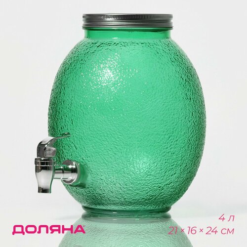 Диспенсер для напитков стеклянный «Фреш», 4 л, 21×16×24 см, цвет зелёный