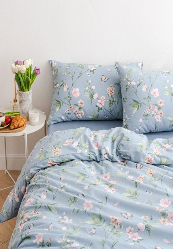 Постельное белье Евро 200x220 Simple Living Eva 2 спальный комплект из сатина, Cветло-голубой