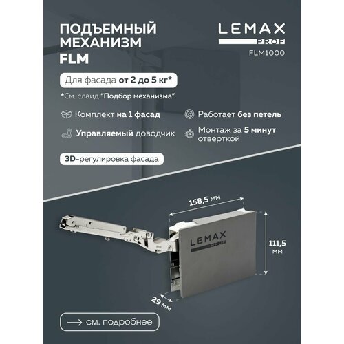 Подъемный механизм Lemax Prof FLM для фасада корпусной мебели с доводчиком 2-5 кг, 158 мм, металл, серый