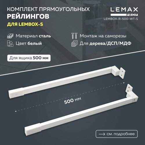 Прямоугольный рейлинг для ящика 500 мм Lemax prof, 2 шт. / Комплект рейлингов для метабокса с крепежом / Цвет
