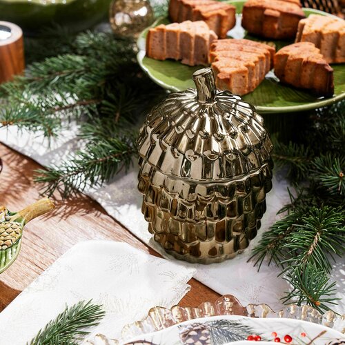 (W)Емкость для хранения, 10х16 см, керамика, бронзовая, Шишка, Winter delice