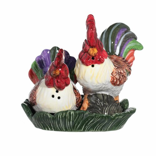 Набор для соли и перца, 14 см, на подставке, керамика, Петух с курочкой, Rooster