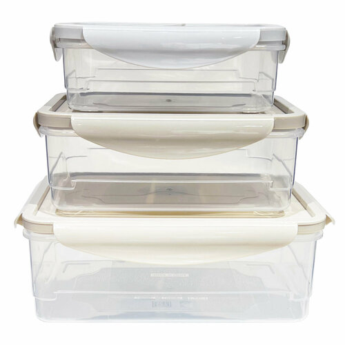 Набор контейнеров, 3 шт, с клипсами, пластик, прямоугольные, пастель, Clip