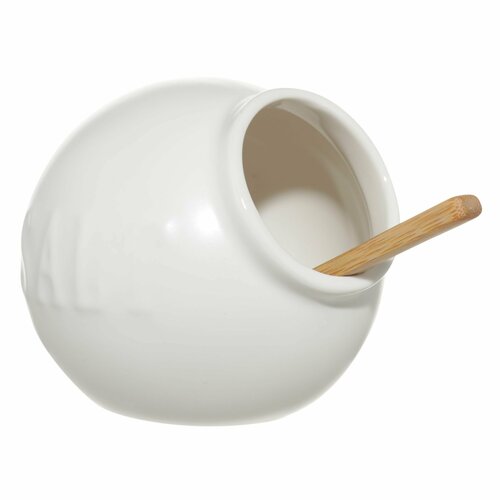 Емкость для соли, 11 см, с ложкой, фарфор P/дерево, белая, Grace
