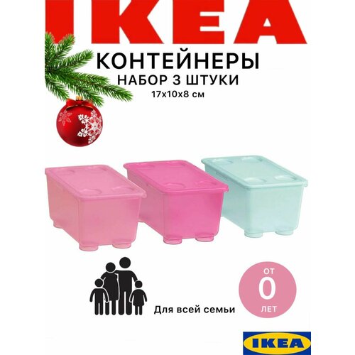 Контейнеры органайзеры для хранения мелочей икеа глис, 17х10х8 см, набор 3 шт, бирюзовый / розовый