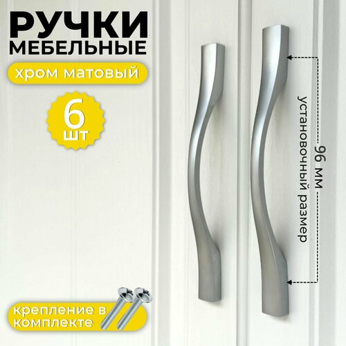 Ручка мебельная скоба, 96мм/127мм, цвет хром матовый, комплект 6 шт