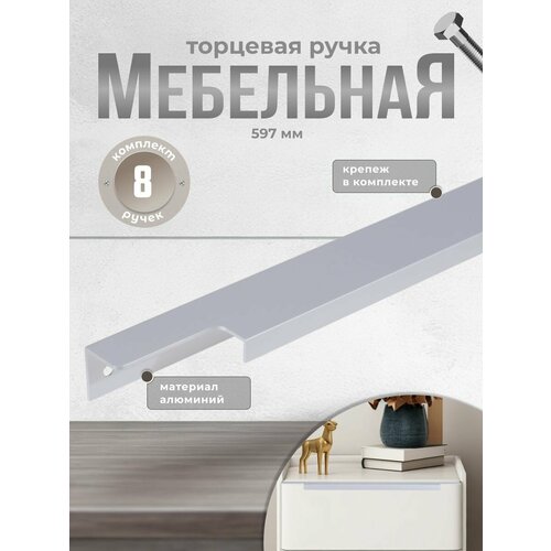 Ручка мебельная торцевая Inred IN.01.1140.577/597. SC матовый хром, комплект 8 шт, ручка для шкафов, ящиков, комодов, для кухонного гарнитура, фурнитура для мебели
