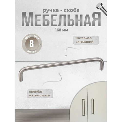 Ручка мебельная скоба, 96мм/127мм, цвет матовый никель, комплект 8 шт