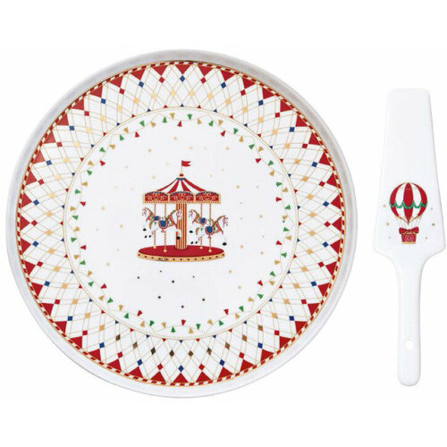 Блюдо для торта с лопаткой Рождественская карусель Диаметр: 32 см Easy Life (Nuova R2S)