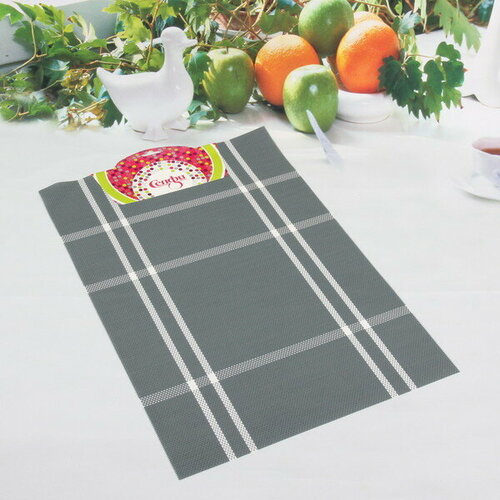 Салфетка на стол 30*45см плетеная, Клетка серая