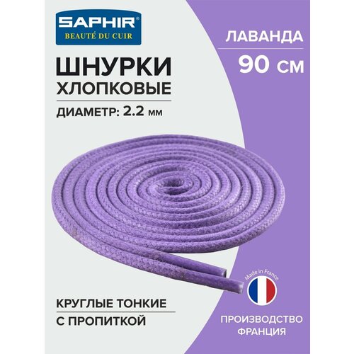 Шнурки Saphir хлопковые круглые тонкие с пропиткой 90 см, диаметр 2,2 мм, цвет 48 лаванда
