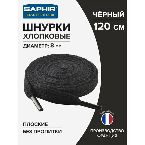 Шнурки Saphir хлопковые плоские без пропитки 120 см, диаметр 8 мм, 01